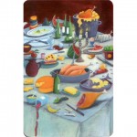 • Gli altri giocatori devono scegliere tra le loro 6 carte quella che più si adatta alla frase appena detta dal narratore, mettendola al centro del tavolo, sempre coperta.
