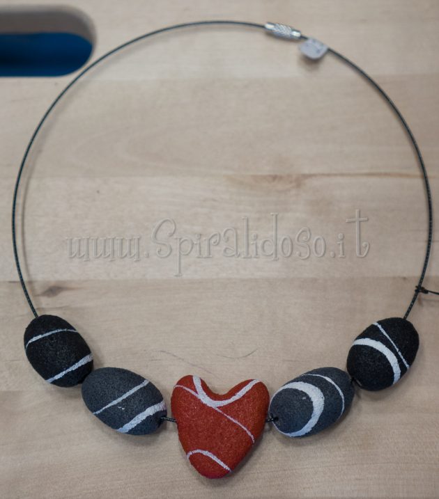 Ciondolo cuore collana della linea “sassi”: realizzati con carta di riciclo e dipinti a mano, una linea di gioielli eco chic per chi ama l’arte moderna e cerca un gioiello etico.