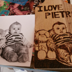 La pirografia (dal greco antico: “scrittura col fuoco”) è una tecnica d’incisione, per mezzo di una fonte di calore, su legno, cuoi...