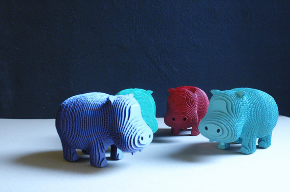 Salvadanaio in cartone ondulato interamente assemblato a mano,